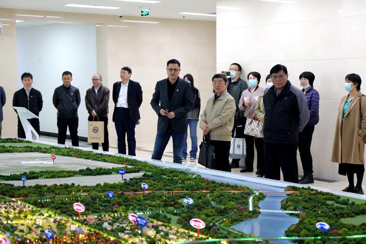 座谈会前,中心组(扩大)一行首先参观了临空经济区沙盘,规划建设部有关同志介绍了大兴国际机场临空经济区(北京部分)的基本情况,重点介绍了2019年大兴机场通航后“三年行动计划”的成果,具体包括临空经济区路网骨架以及“服务机场”配套设施的建设成果。