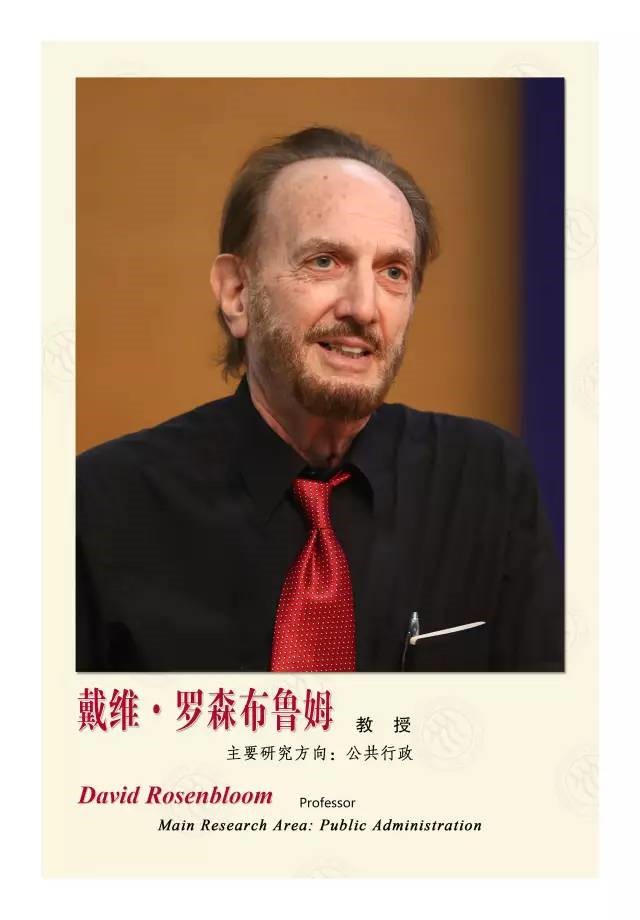 戴维·罗森布鲁姆教授在芝加哥大学获得政治学博士,现为美国美利坚大学杰出教授和中国人民大学外专千人计划专家,美国行政科剧情做爱 院士,曾经担任顶级SSCI期刊Public Administration Review (1991-1996)和Policy Studies Journal (1985-1990)的主编。
