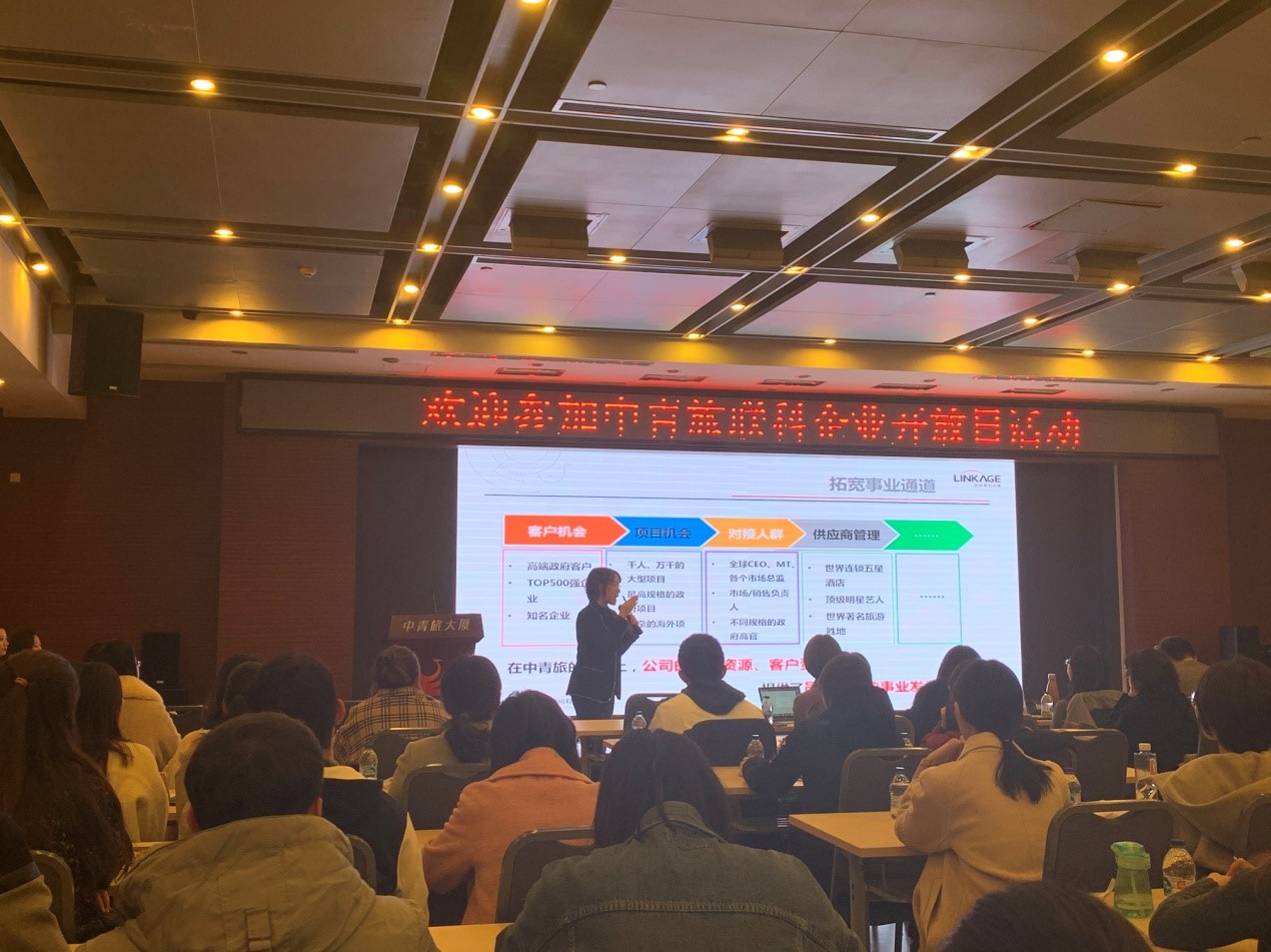 宣讲结束后,在座的同学们有很多疑惑亟需得到解答,因此来到了学生问答环节。同学们根据自己的想法就与中青旅联社相关的问题进行提问,相关工作人员也现场进行了解答;同时,中青旅联社也选出优秀应届毕业生员工做了心路历程的介绍,让同学们对这个公司以及员工的上升路径有了清楚的认识。