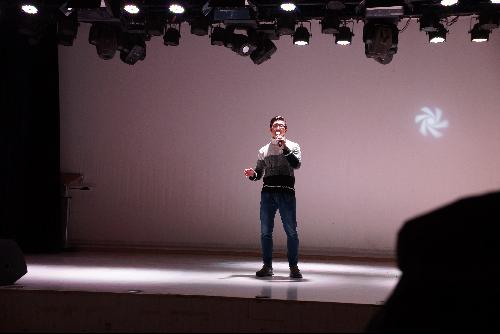 在听歌识曲的创意互动活动中,同学们积极踊跃地参与到活动中去,游戏中轻松愉快,笑点频出,引得台下观众捧腹大笑,最终来自行政管理专业的两位同学拔得了头筹。