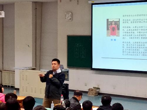 紧接着潘娜老师邀请陈曦讲师跟同学们分享了报选行政管理的心路历程,陈曦讲师则言,行政管理的意义在于时刻铭记“胸怀天下,天下为公”,真正的行政管理人才不仅要关注贡献社会方面的大事,更需要从身边的点滴小事着眼、入手,这样才能真正的服务于社会。