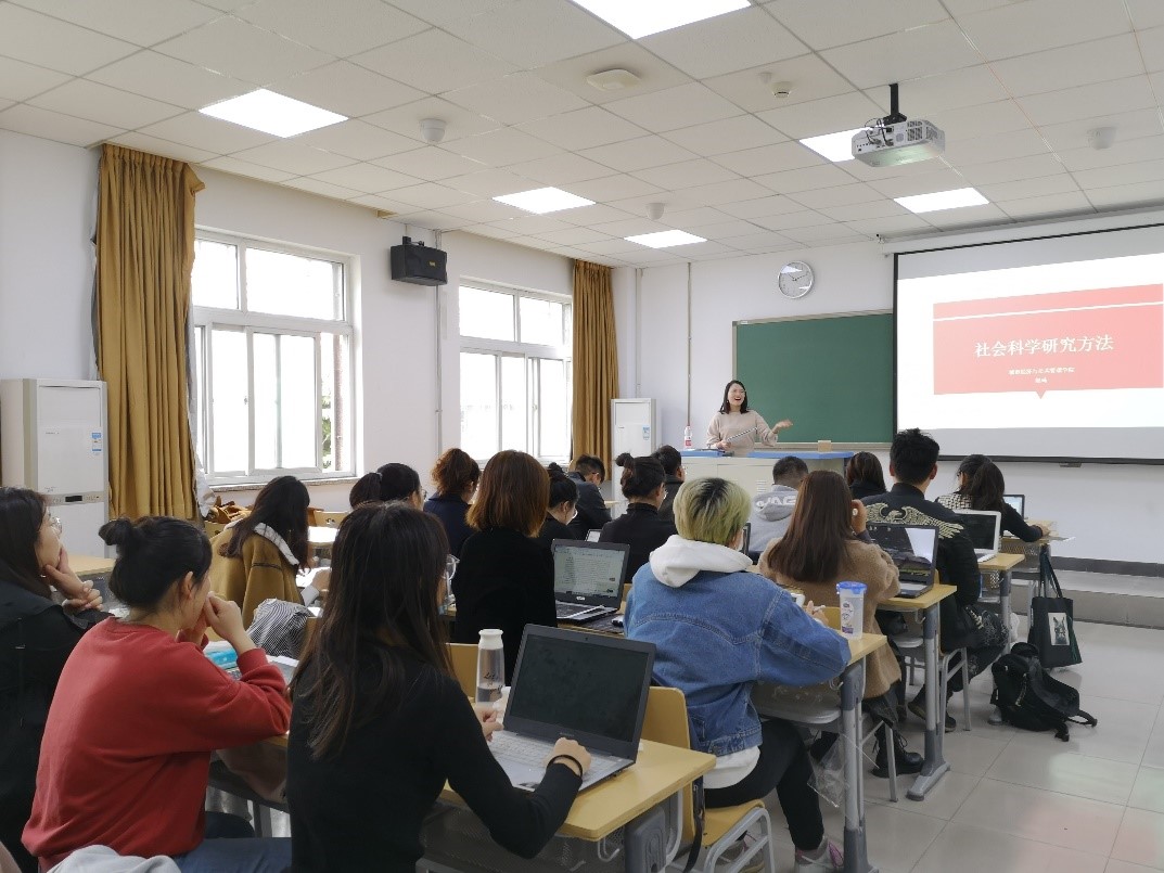 图3 赵琦老师为行管研究生分享社会科学研究方法