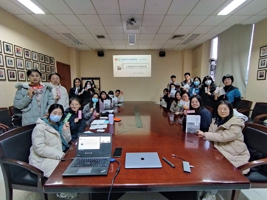 2021年12月14日下午,土地资源管理系在博纳楼第二会议室开展了“谈土论房”读书交流分享活动。本次活动由土地资源管理系主任徐虹老师主持,由张灵老师分享《土地制度与中国发展》一书,全系青年教师及在读研究生、部分本科生共同参与。
