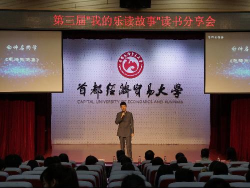 接着,进入到乐读者分享环节。第一个主题是“信仰与信念”。2016级公管4班的白仲同学启携《毛泽东选集》,身穿正统中山装首先亮相。他就《星星之火,可以燎原》、《论持久战》以及《改造我们的学习》三篇毛泽东文选,展开关于如何学习以及如何学好“管理学”的深入探讨。第二部分的主题是“梦想与希望”。2016级公管5班的杨玥同学声情并茂地为同学们推荐了斯蒂芬·茨威格的经典巨作《了不起的盖茨比》,她分析了作者的行文意象,分享了触动心灵的逐梦语句。行管国际班的傅悦同学则围绕“你伤害过爱你的人吗?”和“你挥霍过别人的爱吗?”两个问题对《追风筝的人》一书进行深入的解读,阐明“爱是平等”的观点,并将演讲的主旨升华至“以感恩的心善待他人”的高度。