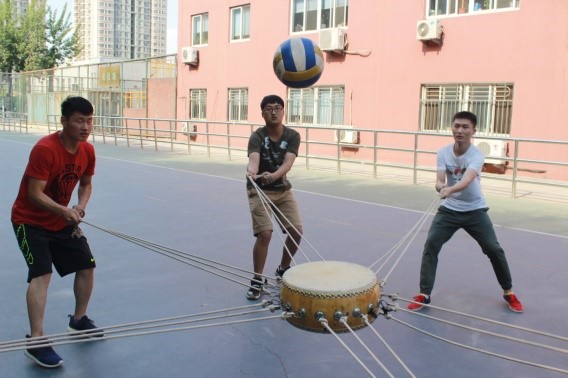 第三个项目,也是最后一个项目,在下午两点准时开始。第三个项目分为四个小游戏,分别是“大鼓颠排球”、“传递小球”、“不倒森林”及最后一个团队鼓励活动,通过计算四个项目全部完成所用的时间来决定胜负。由于之前的项目两队战平,所以大家都摩拳擦掌,准备在最后一战中赢取胜利。