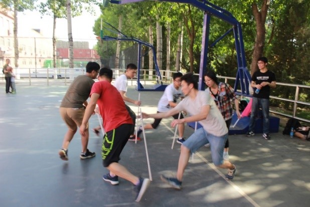 尽管时间很早,但同学们都怀着期待的心情来到了小篮球场,活动在八点钟准时开始。首先,在教练的带领下,同学们简单地热了身体,并做了几个小游戏。既让同学们舒展了筋骨,也调动了的积极性,为接下来紧张激烈的拓展竞赛做好了准备。