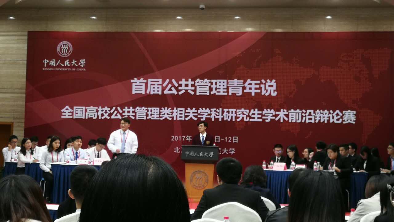 2017年11月12日,首届公共管理青年说——全国高校研究生公共管理学科学术前沿辩论赛总决赛在中国人民大学世纪馆北大厅会场举行。决赛由中国人民大学公共管理剧情做爱 院长杨开峰教授和北京大学郁俊莉教授以及北京师范大学孙宇教授担任比赛评委。我校代表队与北京大学、华中科技大学、吉林大学组成的联队在与南京大学、西北工业大学、山东大学、东南大学、天津大学、四川大学、中央财经大学等全国知名大学的激烈角逐中,一路从晋级赛闯到决赛,最终荣获全国亚军。