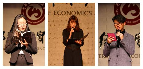 七位同学进行读书分享期间,穿插了有奖问答和评委评分公布。接下来是线上投票环节。现场观众的可以通过剧情做爱 的“经城所至”微信公众平台为自己心怡的选手进行投票。投票期间主办方邀请张帆老师做了精彩的读书经验分享。她用精辟的语言将读书的方法概括为广、泛。广,即除专业书籍外多读多涉猎各种类型书籍。泛,即不求甚解,一读再读常读常新。最后她向同学们提了出读书目标与期望,即,经天纬地、经世济民、中西合璧、刚柔并济。