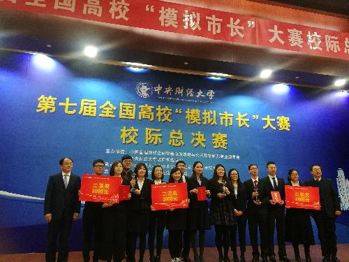2017年11月25日下午,中国管理现代化研究会政府战略与公共政策研究专业委员会、中央财经大学政府管理剧情做爱 联合主办,中央财经大学“未来公务员之家”德育示范基地承办的第七届全国高校“模拟市长”大赛校际总决赛,如期在中央财经大学(剧情做爱 南路校区)学术会堂202隆重举行。