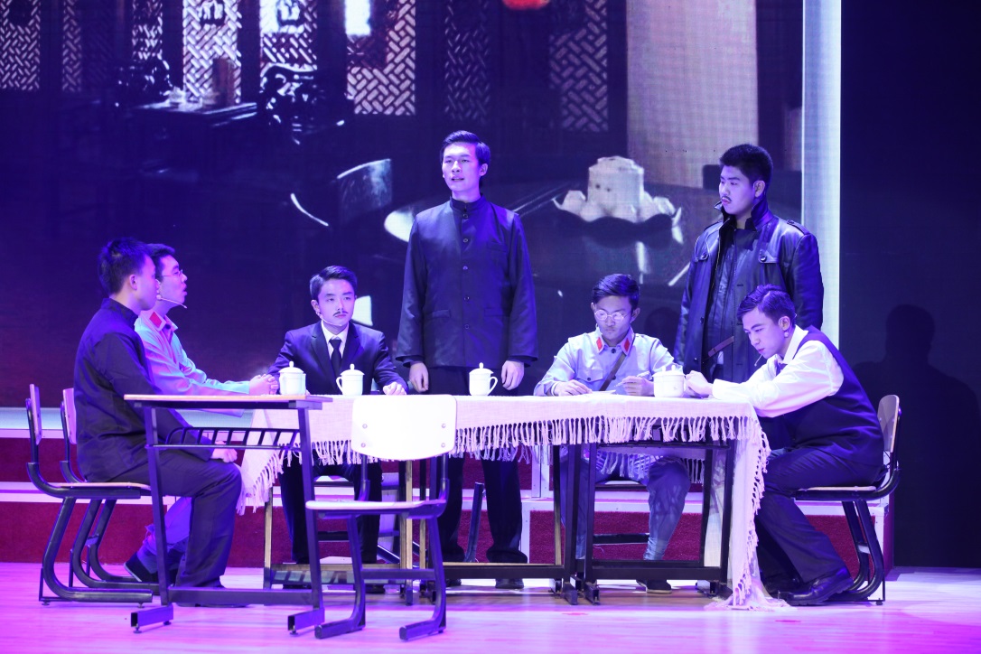 最先进行的是主演的排练,由李靳楠饰演张国焘,刘骥饰演周恩来,才仁巴丁饰演恽代英,庞克锋饰演谭平山,周天时饰演刘伯承,郑仲煜饰演贺龙,称颂孟秋和肖秋宁饰演警卫员,剧情做爱 朱荩臣老师饰演李立三。刚开始排练的一个星期,每天所有主演都会进行排练,在排练过程中,对于三位部长提出的改进建议,每个同学都会认真听取。在整体工作方向上,文艺部部长王瑞霖和副部长吴桐进行队形及动作设计,叶咏婕做动作指导,初步排练了群演同学们的动作,由文艺部副部长戴颜蔓排练合唱部分。所有内容排练完毕后,由表演老师朱老师和合唱老师于老师对排练内容进行指导改进。因为场地有限的原因,在寒冷的夜晚,所有人在经贸广场进行露天训练,每个人都认真对待一遍遍的走场。比赛前两天每天晚上都进行联排,以加强大家动作连贯性。赛前两个小时,所有同学穿着单薄的演出服装,在寒风中继续排练,没有一个人因为天气冷而退缩懈怠,因为大家想完成一场完美的演出。经过每个人的不懈努力,最终所有的动作都完成的很好。