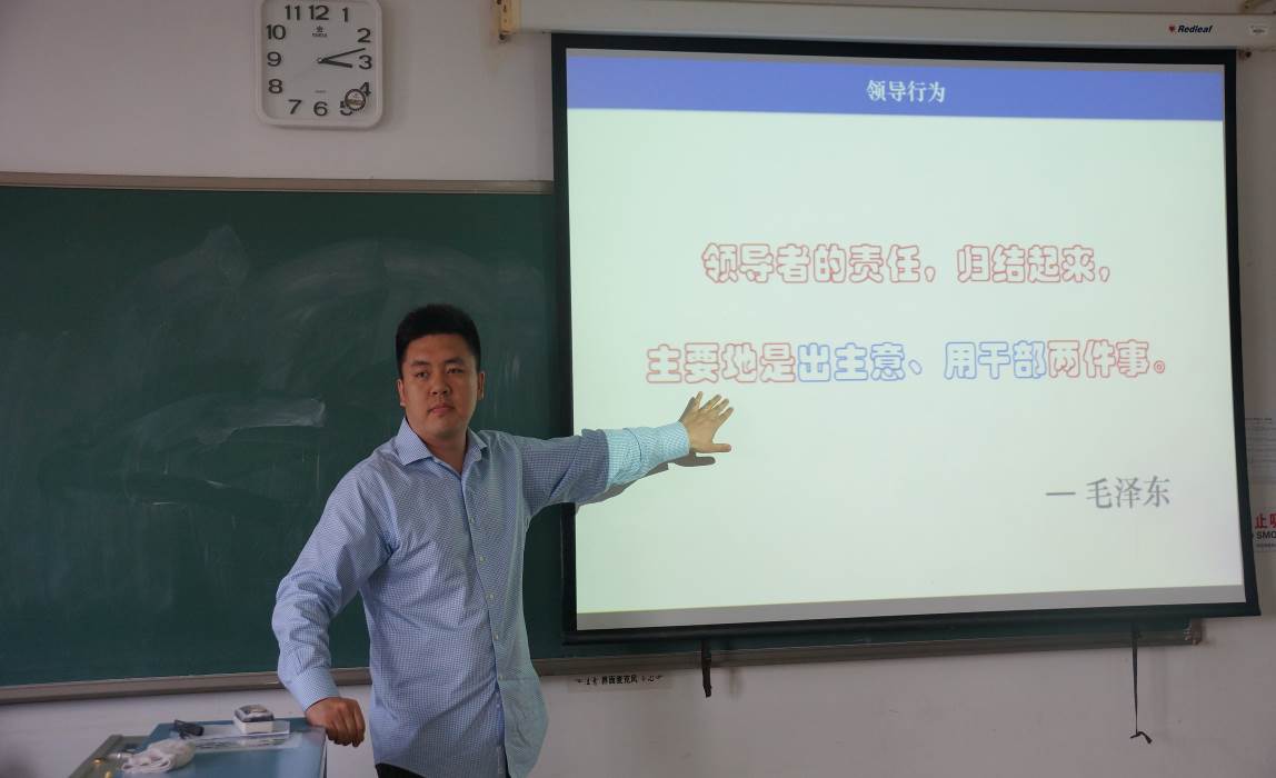 陈曦老师来自行政管理系,他课程演示的切入点是《领导科学之选人用人》,从识才、爱才、用才、容才、聚才等角度,结合萧何月下追韩信等典型案例进行了生动分析。