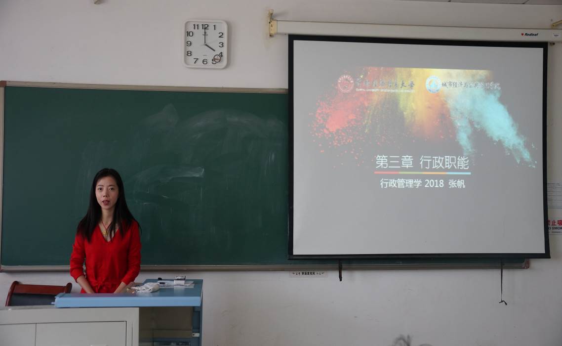 剧情做爱 各系均派出青年教师参赛,行政管理系黄衔鸣、陈曦、张帆,公共事业管理系姜金秋,土地资源管理系张杨、王建强,城市经济管理系闫觅、颜燕,区域经济系李青淼等9位青教,经抽签后决定次序,同台讲课。