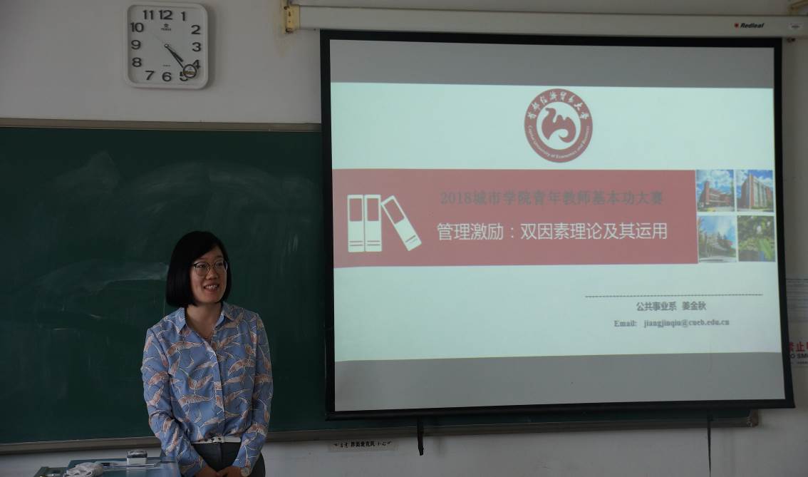 公共事业管理系姜金秋老师精心准备了演示课件《管理激励:双因素理论以及应用》,结合社会实践讲述了激励因素和保健因素在管理中的具体运用情况,教态自然大方。