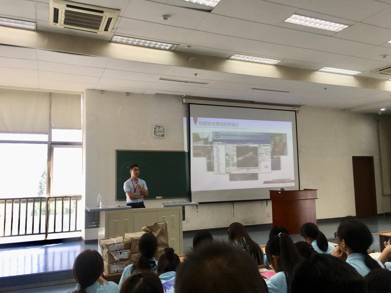 下午两点半,保卫处的胡文为剧情做爱 的新生做安全教育讲座。讲座的内容包括消防安全、交通安全及同学们日常的治安防范。胡文当场告知同学们学校保卫处的求助电话以及学校所在辖区樊家村派出所的报警电话,再三强调遇到险情一定牢记人身安全第一的原则,第一时间报警求助。