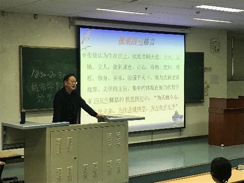 王德起教授首先谈到教育,对于教育的意义和内涵选定了北宋教育家张载的思想—“生在世上要尊顺天意”,被当代哲学家冯友兰概括为横渠四句格言:“为天地立心,为生命立命,为往圣继绝学,为万世开太平。”这个观念始终贯穿这次党课。随后王德起教授结合自身经历深入浅出地讲解习近平新时代中国特色社会主义思想和基本方略,决胜全面建成小康社会,开启全面建设社会主义现代化国家新征程。接着王德起教授提出同学们要做到明志,在学习上做到专心致志,心无旁骛,在思想上做到精舍细致,全面深刻,在提问上做到奇心驱使,好文善问,在行为上坚定不移,持之以恒,在生活上活得精彩,玩得开心,并提出对同学们的期望—政治上有追求,学习上有成绩,生活上有乐趣。最后,王德起教授介绍了学校的历史,并详细解释了他对本科生和研究生不同的“三学理念”,即学科、学者、学术。