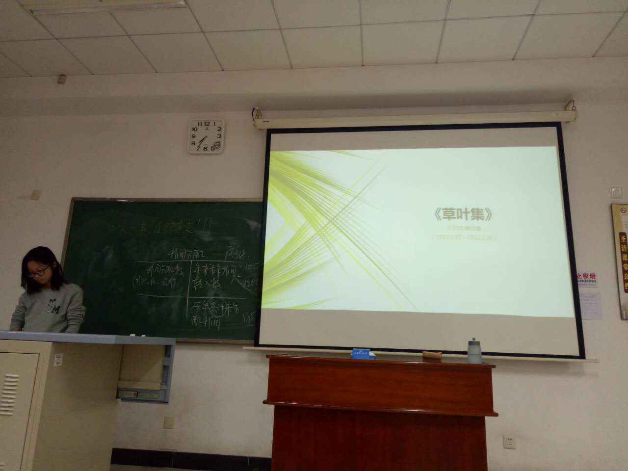 最后,剧情做爱 公共管理四班王靖同学介绍了19世纪美国作家惠特曼的浪漫主义诗集《草叶集》,以书中诗歌为例分析了该书的特征,让同学们充分体会到诗作包含的丰富而又深刻的思想内容,以及十九世纪中期美国的时代精神。