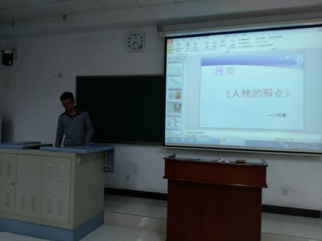 今天一共有两位同学为大家介绍了《人性的弱点》这本书,分别是李慧媛同学和田淼同学。分别向大家介绍了书籍作者以及相关内容,并且将书中的内容结合生活中的经历与感受和同学们进行了一番讨论,同学们受益匪浅。