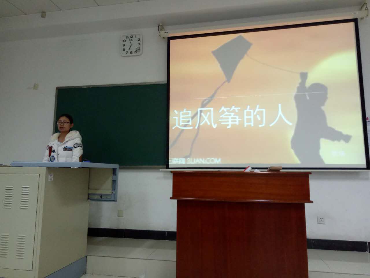 罗瑒同学为大家介绍了《追风筝的人》中作者以及人物关系,与同学分享了自己对于读书分享会的见解以及感受,同时与大家讨论了自己读书的方法。