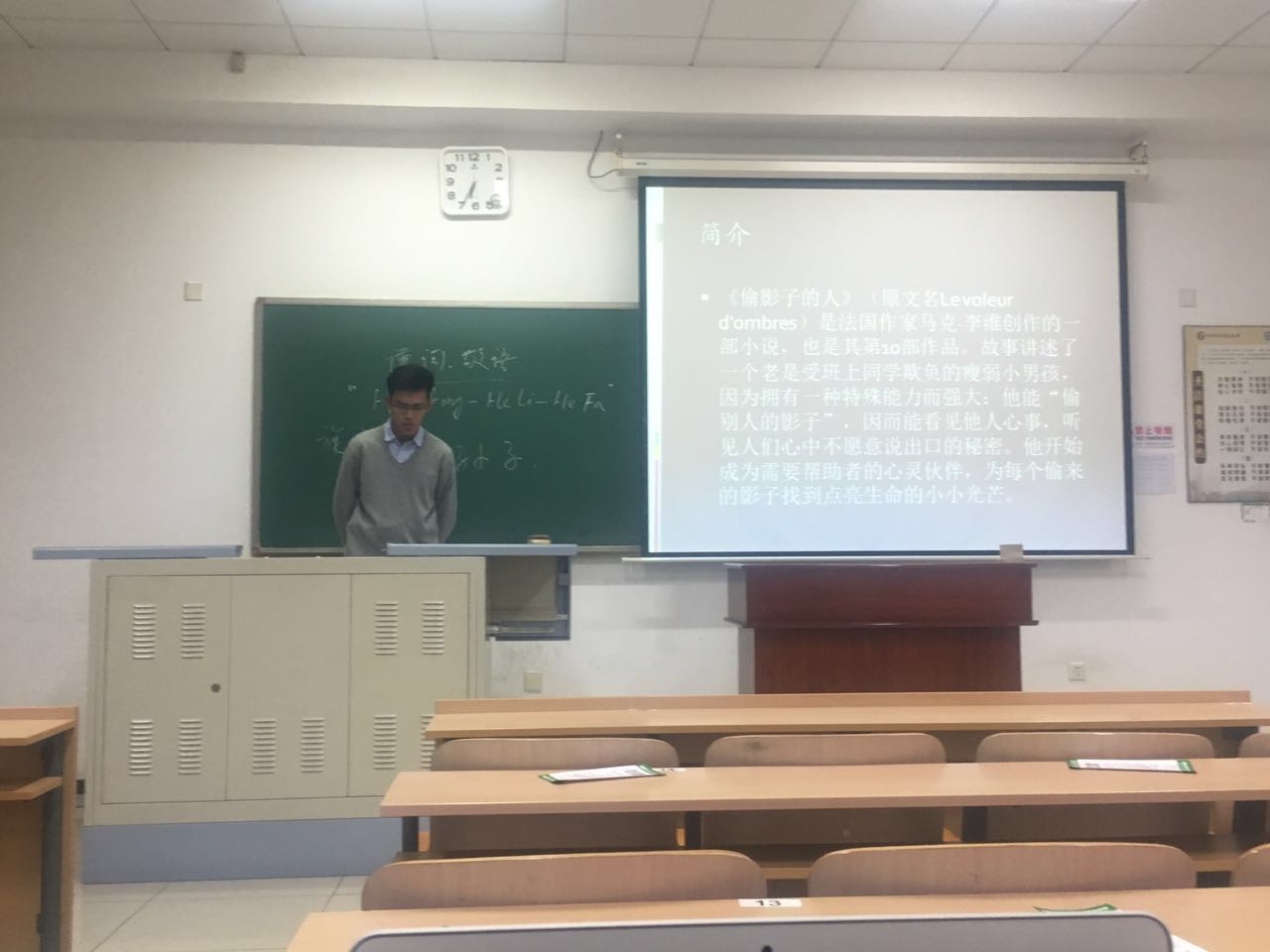 接着是王海玉同学,她为大家带来的也是《偷影子的人》这本书。但是她与张泰阁同学有所不同,王海玉同学是从主人公关系脉络展开的分享,这让剧情做爱 5班的同学们对《偷影子的人》有了更深的了解,愈发想读这本书了。